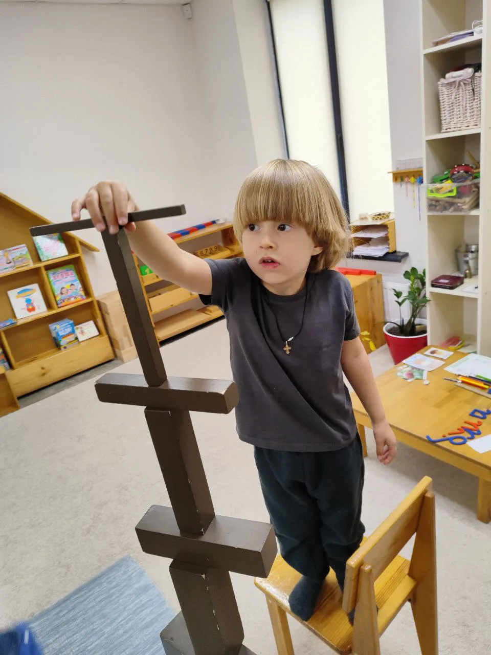 А зараз ми заводимо нашу дитину в монтессорі – простір. Їжа тут в основному – духовна. Потреби , які виявляються в дитині, – цілком приземлені, прості, щирі; вони виходять з глибини душі дитини, незалежно від впливу будь-яких потужних, кричущих зовнішніх стимулів. Тут дитина знаходить терпіння, смиренність і тишу. Замість багатьох тисяч пропозицій, від так званих фахівців, вона отримує свободу вдосконалення, допомогу і навіть виправлення невеликих помилок.