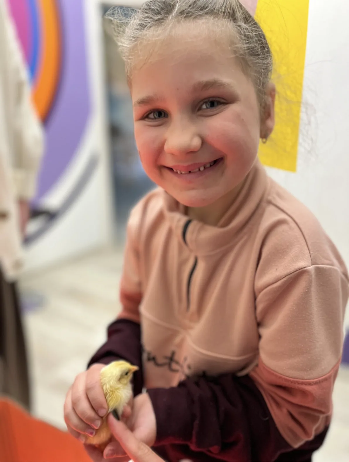 В цей день і наступний всі діти приходили подивится на диво народження! Навіть дорослі – матусі, бабусі, татусі – всі ті, хто ніколи в житті не тримали курчат! Посмішки і радість!!!